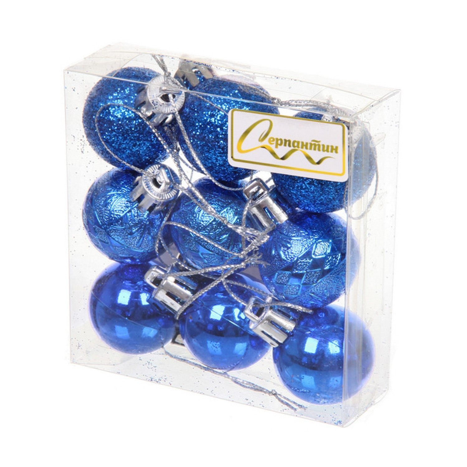 Новогодние шары 3 см (набор 9 шт) «Микс фактур», синий
