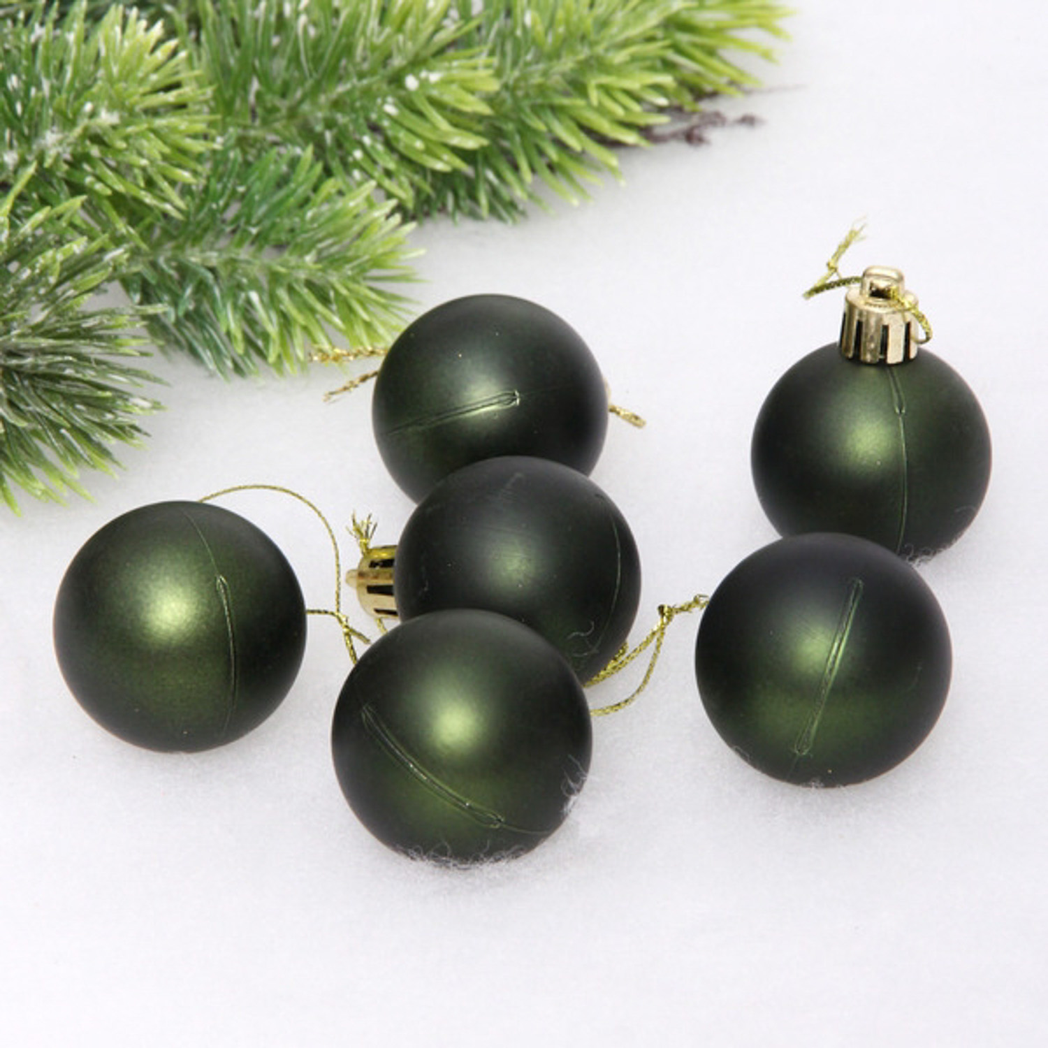 Новогодние шары 4 см (набор 6 шт) "Матовый", изумруд