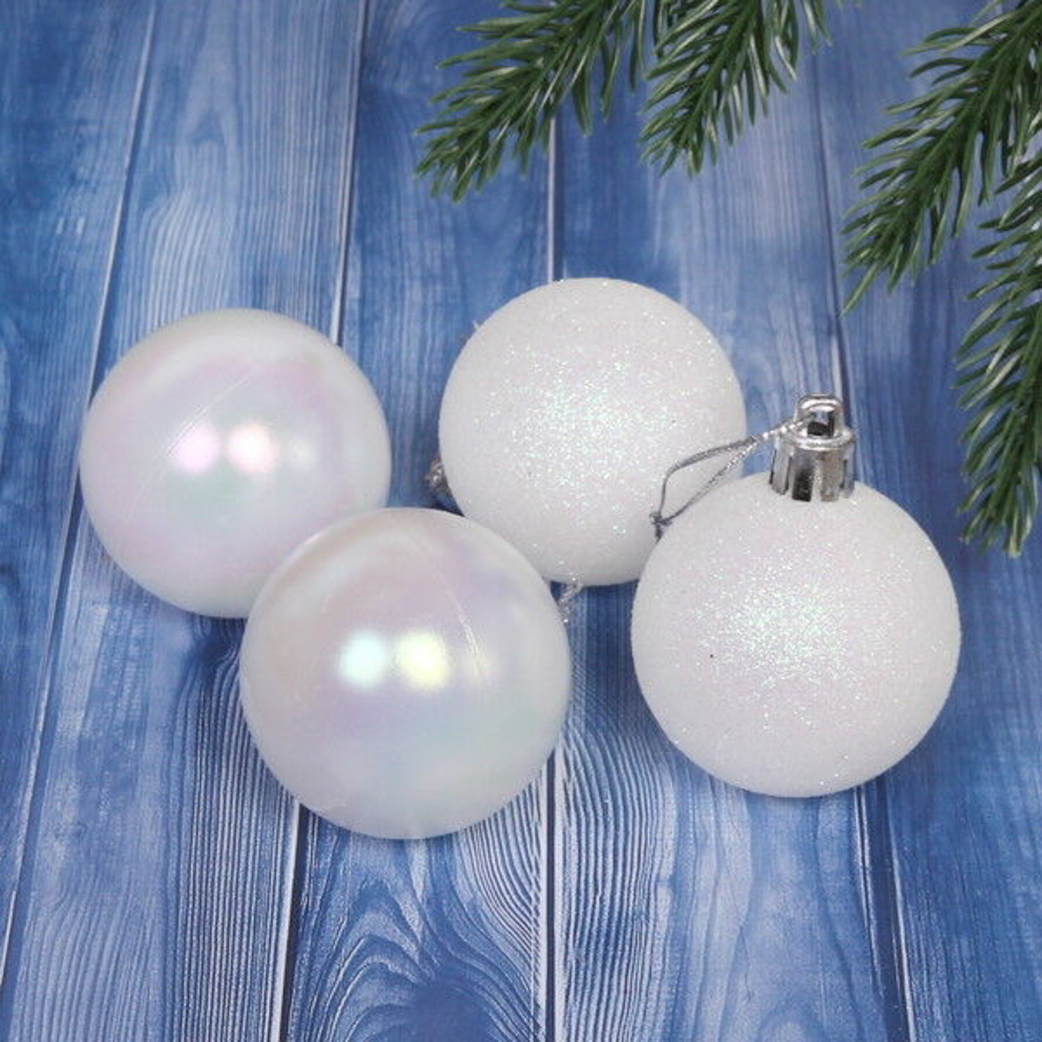 Новогодние шары 5 см (набор 4 шт) "Микс фактур", Белый/перламутр