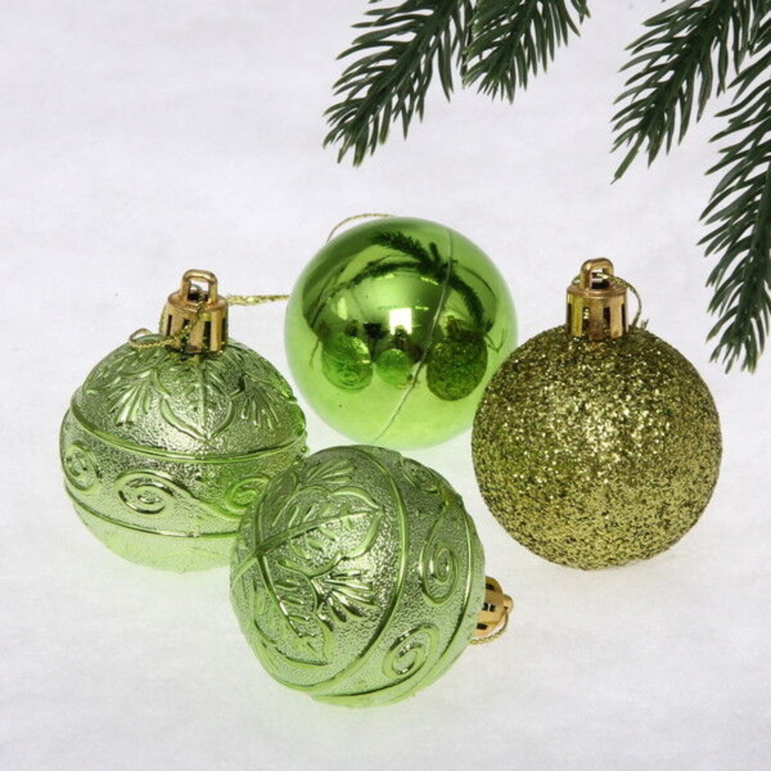 Новогодние шары 5 см (набор 4 шт) "Микс фактур", салатовый