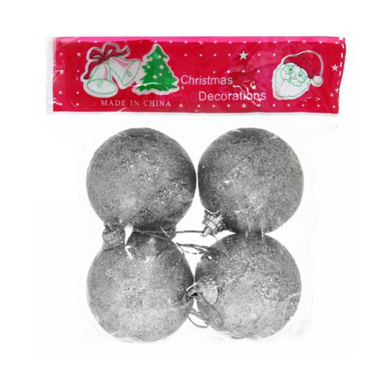 Новогодние шары 5 см "Посыпка из блёсток" набор 4 шт, серебро