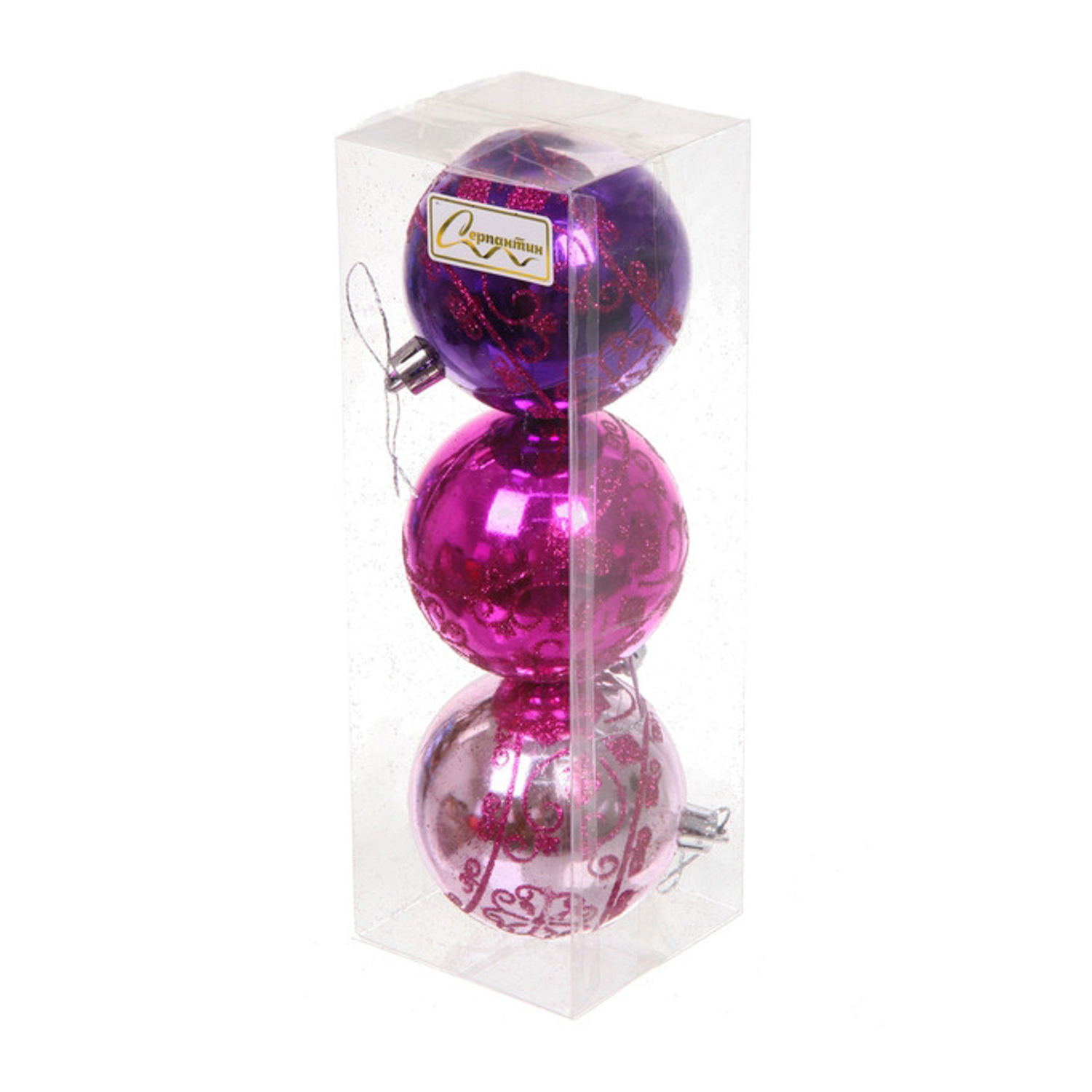 Новогодние шары 7см (набор 3шт) "Ажур", розовый/фуксия/фиолетовый
