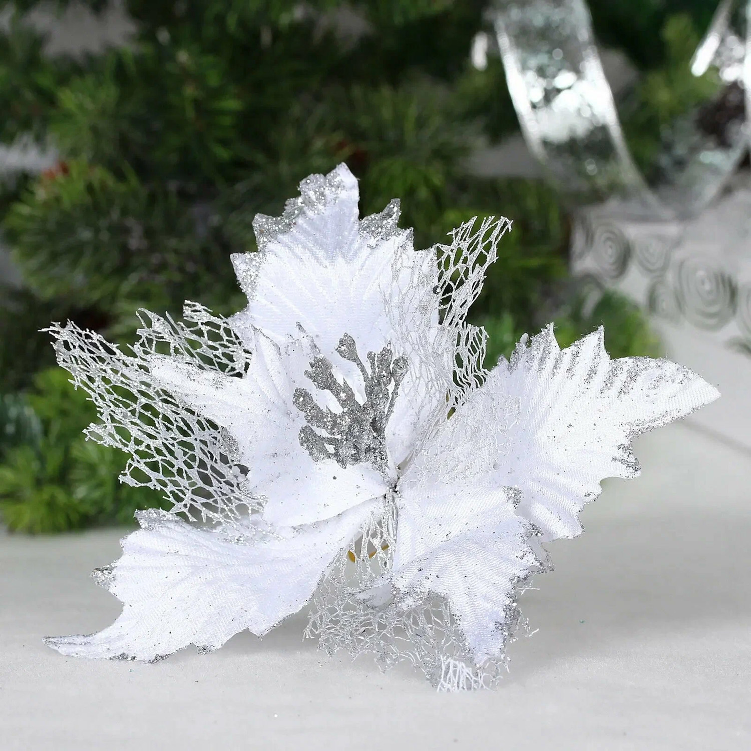 Украшение новогоднее "Пуансеттия - Сказка" 23 см, Шампань