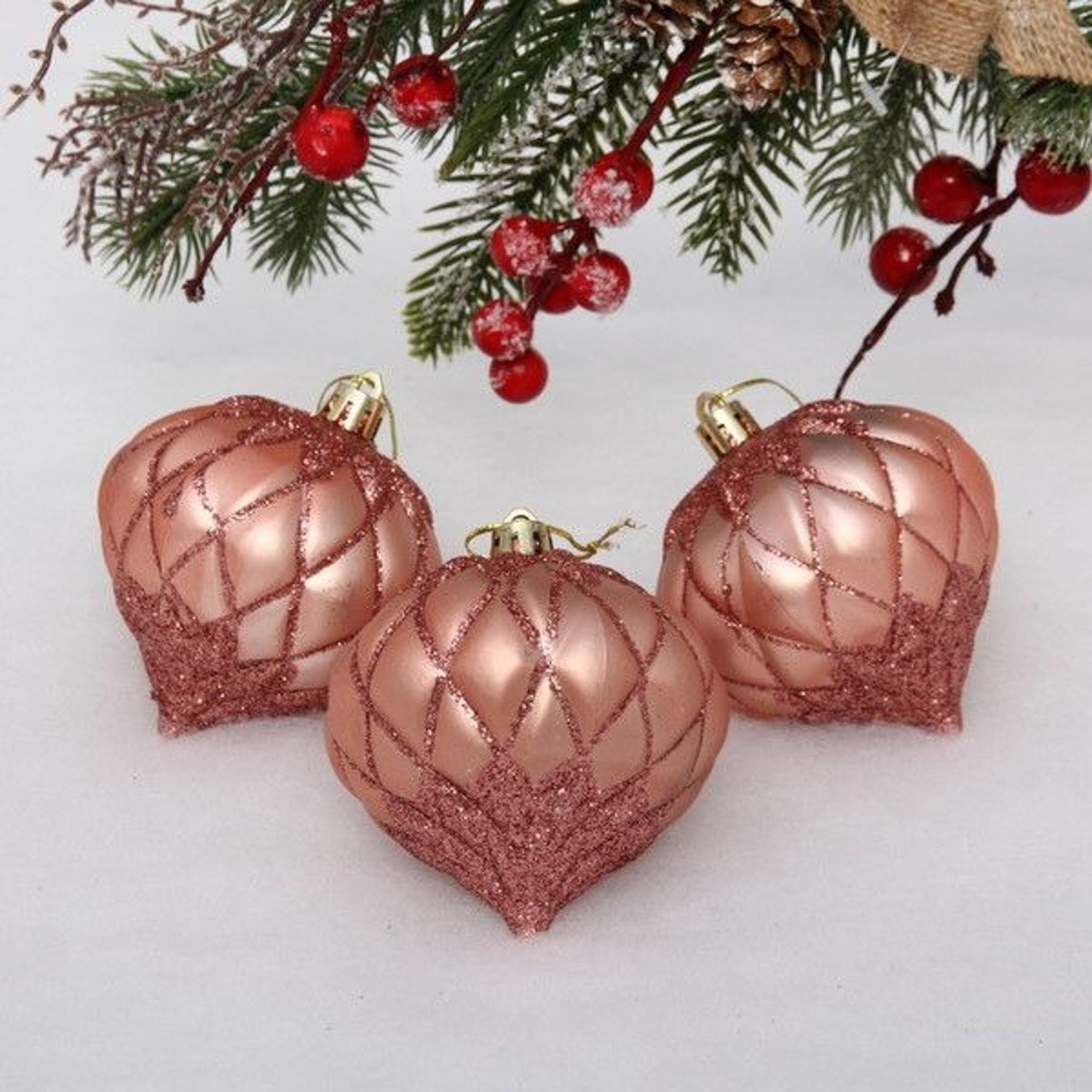 яяяЁлочные игрушки "Юла" 8 см (набор 3 шт), розовое золото