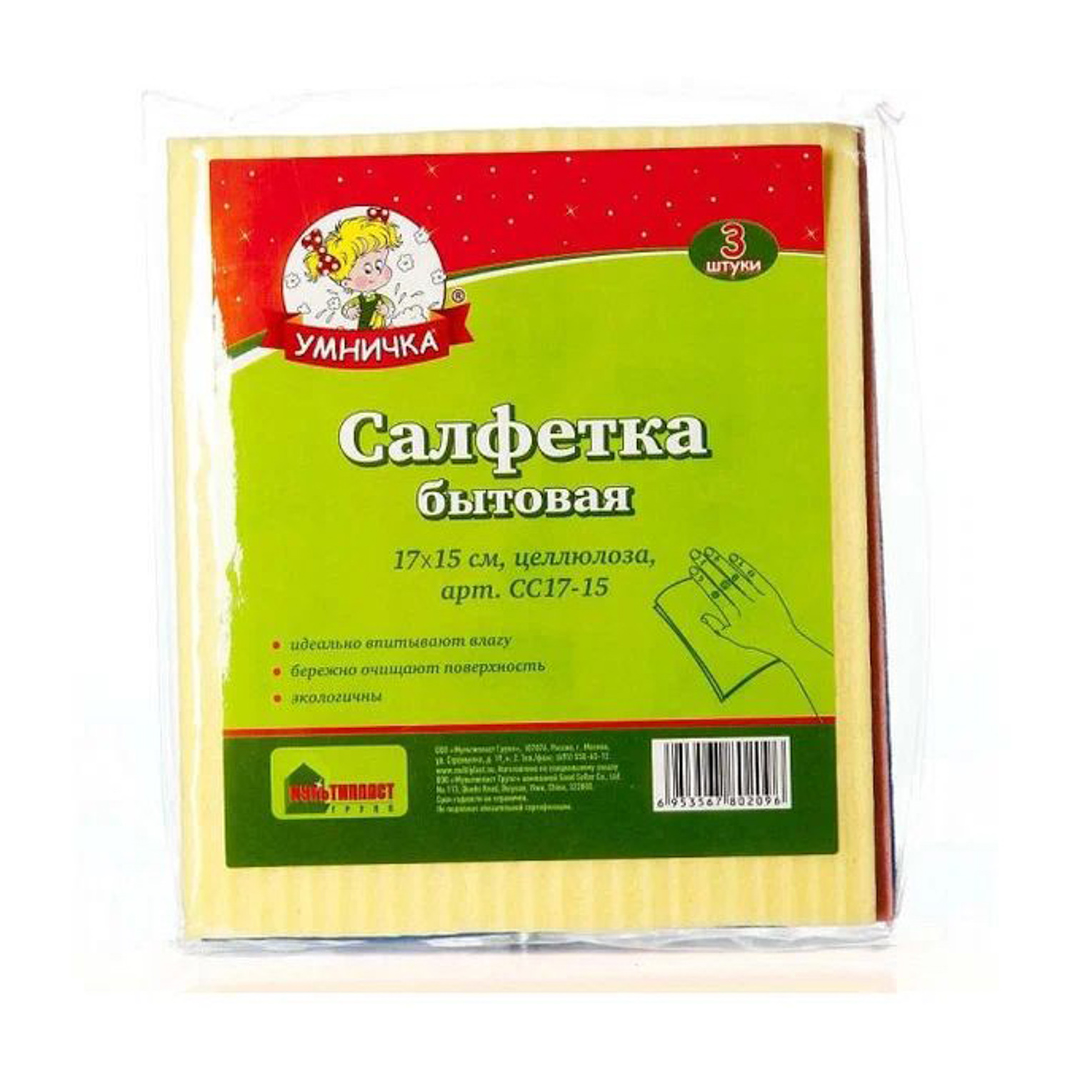яяяСалфетки для уборки целюлоза 17х15см 3шт MPU0540 "Умничка" *1/70