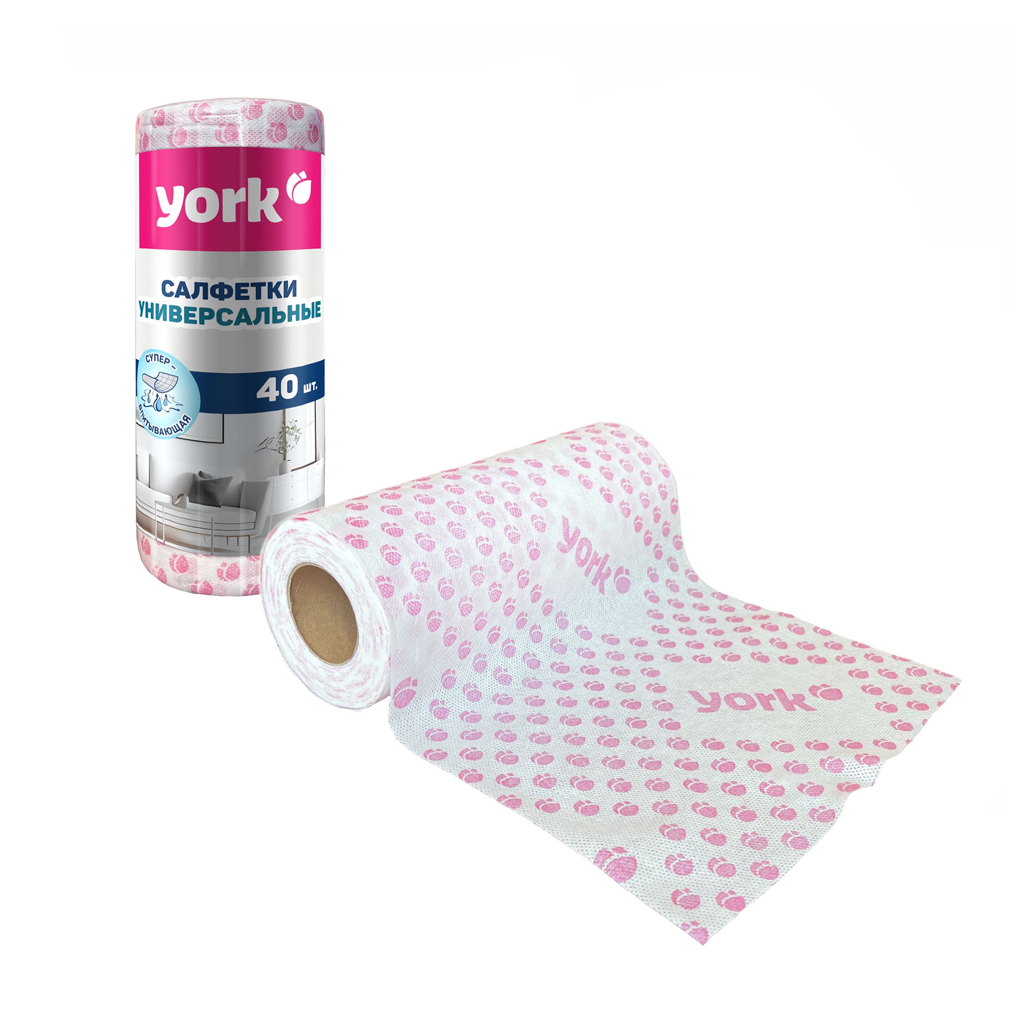 Салфетки для уборки в Рулоне 25х40см 40шт универсальные "Премиум" С РИС. 020480 "York" *1/12