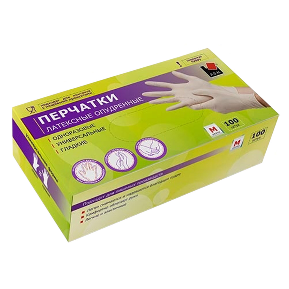 яяяПерчатки латексные одноразовые опудренные M (средный) 100шт в к. OPD050M "А.Д.М."*1/10